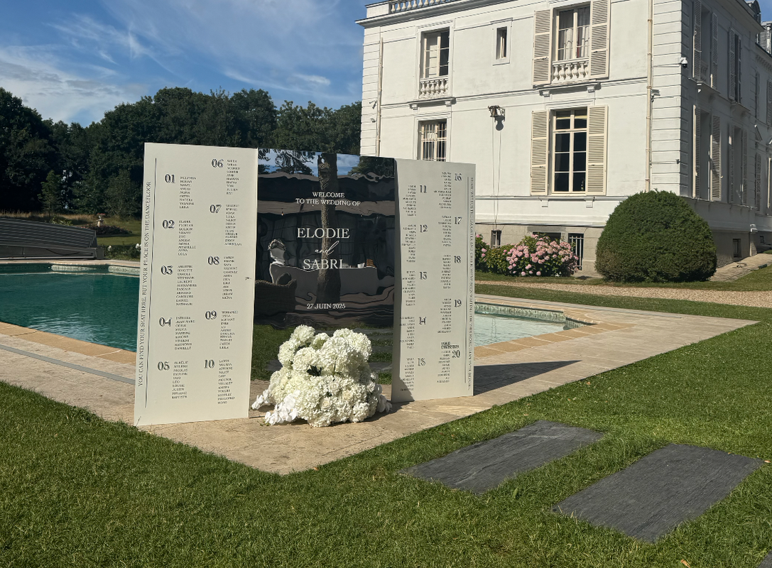 À travers nos menus, marque-places, numéros de table, urnes, livres d’or ou éléments signalétiques, nous veillons à l’harmonie des formes, des matières, des couleurs et des typographies — pour une mise en scène homogène, soignée et mémorable.